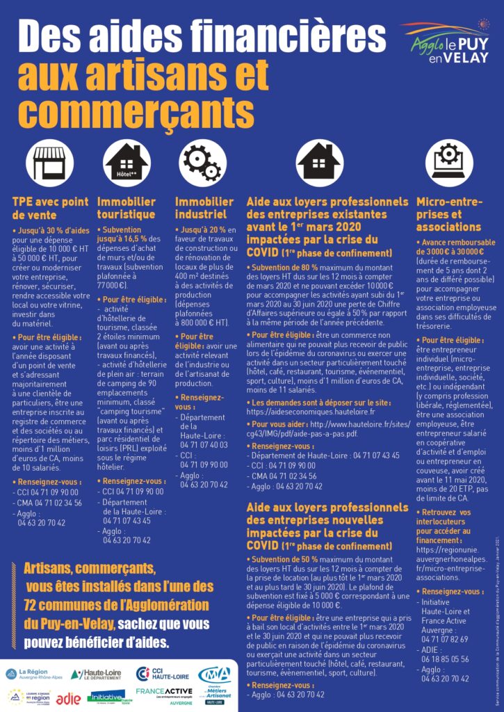 Des aides financières peuvent être attribués aux artisans et commerçants du territoire qui en font la demande.